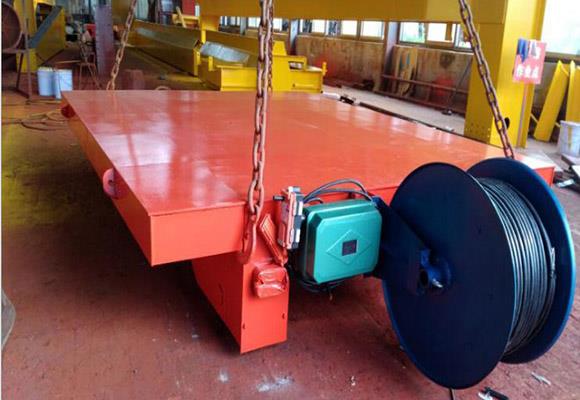 Электрический плоский автомобиль серии KPJ представляет собой электромобиль с катушкой электропитания, с кабелем барабанного переменного тока мощностью 380 В. Кабельный барабан представляет собой магнитную гистерезисную муфту, обеспечивающую равномерность и простоту вытягивания. Ac 380V обеспечивает электроэнергию для YZ, поднимающего металлургический двигатель на плоском автомобиле, и двигатель приводит в движение плоский автомобиль. Кабельный барабан автоматически катится или выходит из кабеля, когда он работает, на который влияет длина источника питания катушечного барабана, а максимальное рабочее расстояние меньше 200 м. Преимущества этого типа плоского автомобиля - принять двигатель крановой металлургии, который подходит для плохих условий работы. Плоская структура автомобиля проста и надежна, экономия цен и конструкция дорожки удобны.
