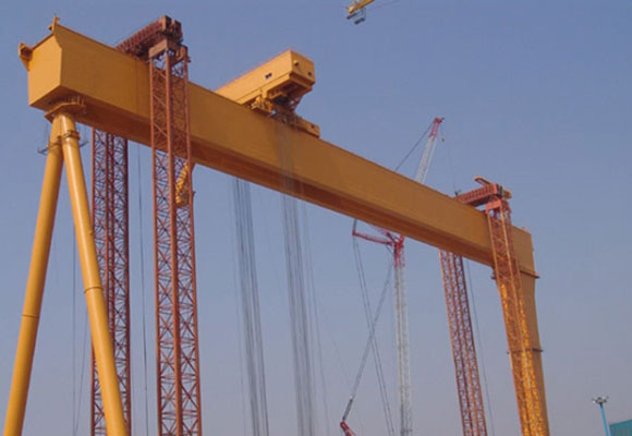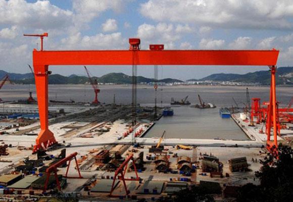 Двойной козловой кран-манипулятор для судостроения - это один из видов козловых кранов, он используется главным образом для причала собранного корпуса. Этот вид судового крана имеет функцию нагрузки и разгрузки, подъема, сегментации вращения воздуха. Имеют преимущество при повороте корпуса и закрытых операциях. первый - через корректировки вверх и вниз, весь сегмент на машине.