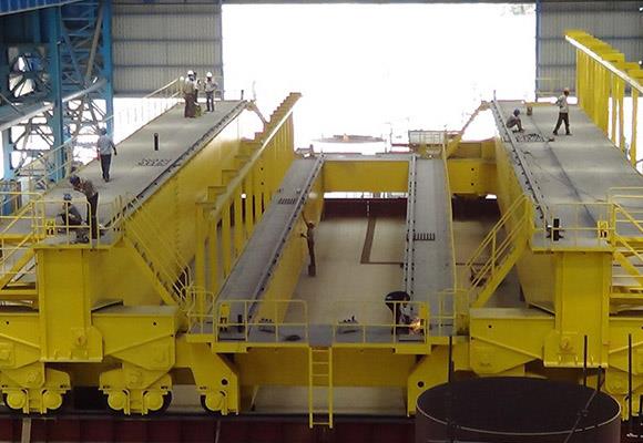 YZS модель 125 / 32-320 / 80ton четырехбалочный литейный кран в основном используется для транспортировки, заливки и горячей металлической загрузки жидкого металла в процессе плавки в литейном цехе, литейном цехе, сталелитейном заводе, цехе плавки и т. Д. При подъеме плавильного металла, главный крюк висит на двух ушах стального ковша с крюком-козлом, в то время как aux. чтобы вылить. Стандартный крюк для этого типа крана является обычным крюком для литья, если вы хотите использовать кран для подъема ковша, его можно использовать вместе с крюком для порталов.