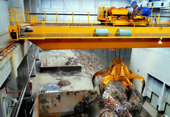 QZ Навесной кран с захватом широко используется при погрузке грузов в порт, завод, цех, электростанцию, сталеплавильную установку, цементный завод, отрасль переработки отходов в возобновляемых источниках энергии.