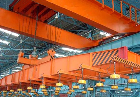 Двухбалочный мостовой кран с электромагнитом - это специализированный кран для подъема и перемещения стальных изделий, стальных листов и стальных труб. Этот кран состоит из балки, передвижных механизмов, подъемной тележки, электрических деталей и разбрасывателя электромагнитов. Электромагнитная сила всасывания этого мостового крана может длиться 10 минут после выключения. И форма разбрасывателя электромагнитов может быть настроена на форму материалов, подлежащих подъему.