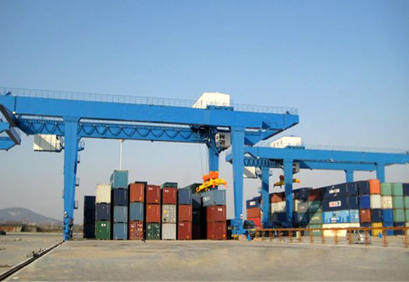 Козловой кран на железнодорожном вагоне (кран RMG) в основном используется для загрузки, выгрузки, перемещения и складывания контейнеров на железнодорожных перевалочных площадках и больших складских площадках для хранения контейнеров. Он состоит из основной балки, жестких и гибких выносных опор, механизма перемещения троллей, подъемного механизма, механизма перемещения крана, электрической системы и кабины управления.